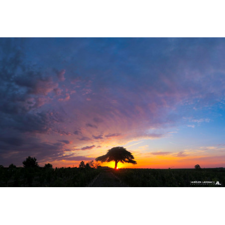 Après 1h de route, je ne savais toujours pas où aller. Je m’étais perdu désormais sur de nouvelles routes charentaises en quête de ces arbres solitaires que j’affectionne temps. Et enfin en haut de ces vignobles, je le vis.