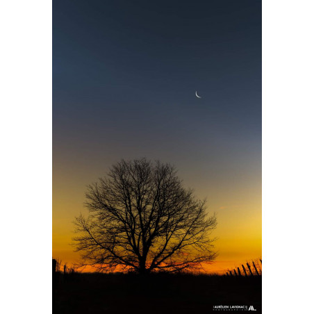 Je vous invite d'ailleurs à aller voir une autre photographie avec la pleine Lune et un autre objectif dans la série "Arbres solitaires", ainsi que l'oeuvre "Cascade Céleste" qui ont étés toutes réalisées au même endroit, au coeur de l'entre deux mers, du coté de Monségur en Gironde.